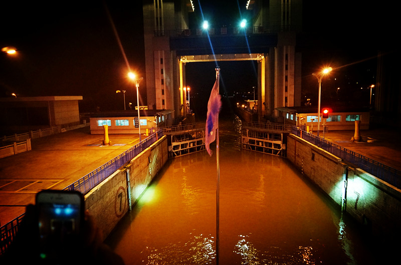 夜幕降临,从三峡游客中心出发,豪华游轮鸣笛起航顺水而下,游人感受江风轻抚的惬意和畅快,沿途欣赏灯火辉映下的宜昌天然塔、夷陵长江大桥、滨江公园、镇江阁。游轮行至葛洲坝三号船闸,但见那人字船闸门缓缓开启,游轮缓缓驶入闸室,人字船闸门又缓缓关上,游轮上的人们即感觉到游轮在慢慢下降,约十多分钟,前面的人字船闸门缓缓开启,游轮驶出了闸室,人们看到了下游的江面。游轮在下游江面行驶了几分中即掉头,几分钟后到达大坝下游的另一侧船闸,那人字船闸门缓缓开启,游轮驶入闸室,人字船闸门又缓缓关上,游轮上的人们即感觉到游轮在慢慢上升,约十多分钟,前面的人字船闸门缓缓开启,游轮驶出了闸室,人们又看到了上游的江面。 哦,乘游船夜过葛洲坝船闸,亲历感受了船过葛洲坝船闸,体验到夜色下水涨船高的乐趣。 |