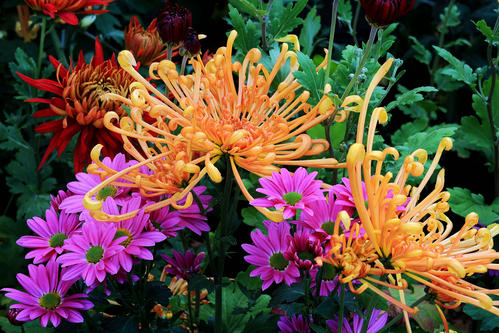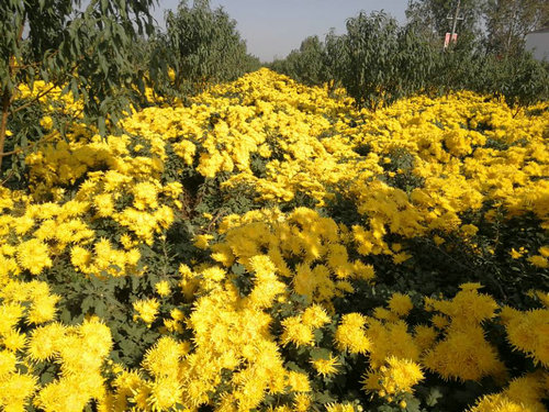 于是菊花跻身中国十大名花之中,荣登花中“四君子”(梅兰竹菊)之一,成为世界四大切花(菊花、月季、康乃馨、唐菖蒲)之一,产量居百花之首。 其实除了野菊花,还有众多的人工培育的名贵菊花,这些菊花是经长期选择培育的观赏花卉。早在公元八世纪前后,作为观赏的菊花由中国传至日本。17世纪末叶荷兰商人将中国菊花引入欧洲,18世纪传入法国,19世纪中期引入北美。此后中国菊花便遍及全球。中国是菊花的发祥地,菊花的老家。 在万紫千红、百花竞艳的百花园中,有哪一种花能享有菊花这样的盛誉呢?每年不知有多少个大大小小的菊展,掀起一阵又一阵“菊花热”。人们种菊,赏菊,簪菊,食菊,醉菊,咏菊……给人们增添了多少情趣,多少诗意,多少芬芳?? 菊花,人民之花,民族之花,幸福吉祥之花!